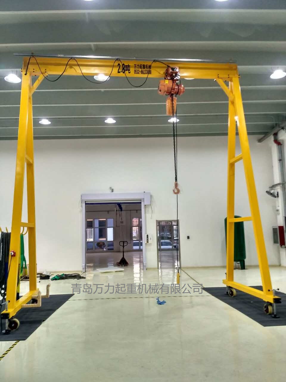 輕型龍門架起重機是我公司根據大、中、小工廠(公司)日常生產需要搬運設備、倉庫進出貨,起吊維修重型設備及材料運輸的需要,設計生產的一款輕小型起重設備主要用于車間日常生產需要搬運設備、倉庫進出貨,起吊維修重型設備及材料運輸的需要。內容:該移動龍門架優點是可多方位移動,可快速拆卸安裝,占地面積小,用微型汽車就可轉移到另一個場地安裝使用。