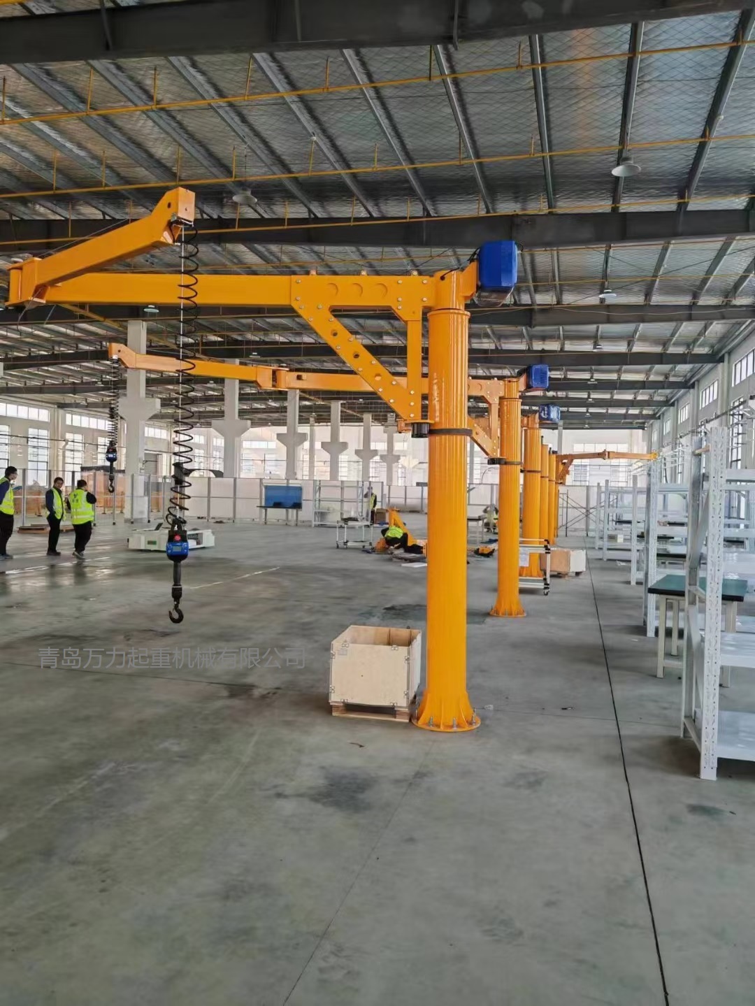 曲臂式懸臂起重機(別稱:曲臂吊,彎臂吊,折臂吊,拐臂吊、曲臂式懸臂吊,曲臂式懸臂吊,曲臂式懸臂吊)曲臂式懸臂吊具備構造新奇、伸屈自如友家、實際操作靈活、效率高環保節能的特性。實際操作時,按壓電鈕將載重量物吊著,運用承重梁的彎折和轉動健身運動,在操縱工作中地區內繞行物塊,使工作中地區合理運用。用手輕輕地梭門,便可超過安全作業地區的任意部位。