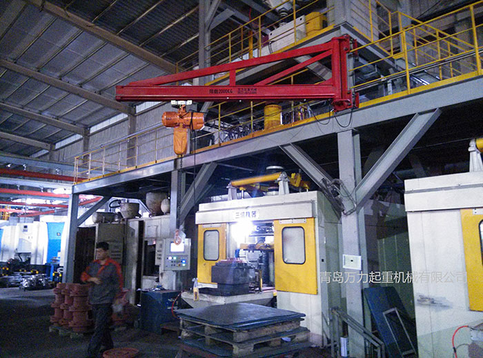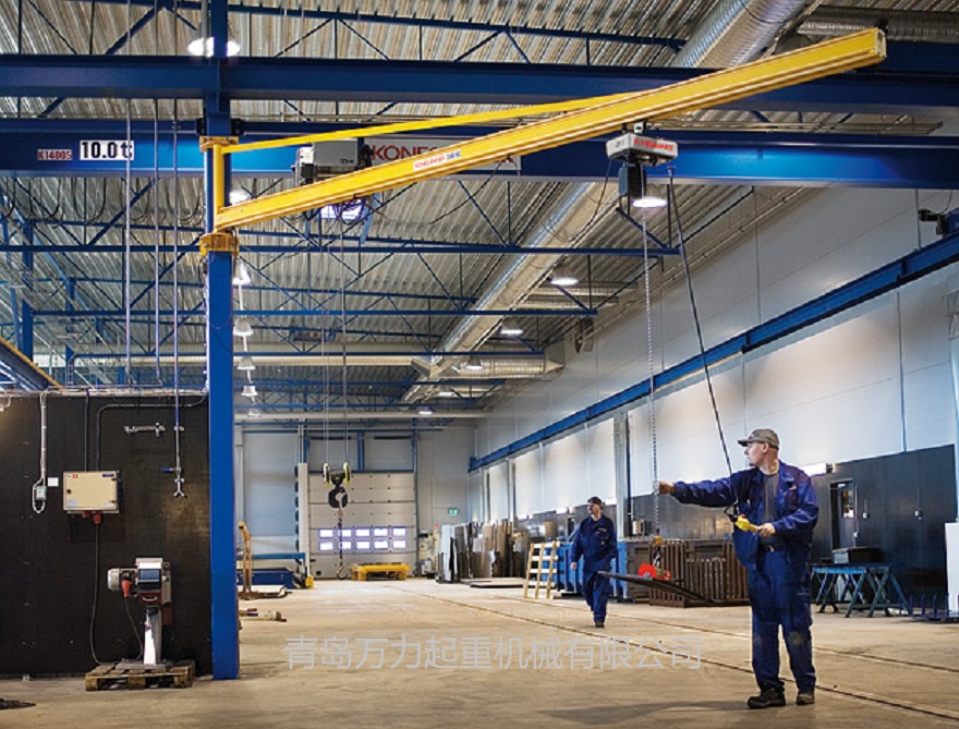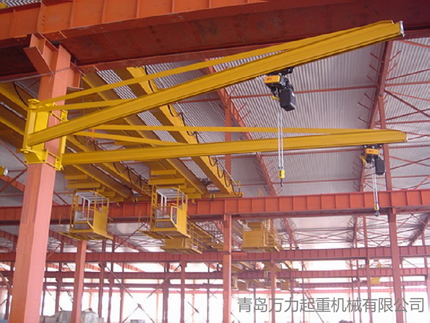 墻壁式旋臂起重機(墻壁吊)由支撐架、旋臂設備及環鏈電動葫蘆等構成。懸壁固定不動在墻面或水泥柱上,可依據客戶要求開展旋轉。旋轉一部分分成手動式旋轉和電動式旋轉。環鏈電動葫蘆安裝在懸壁路軌上,用以吊裝吊物。旋臂起重機是為適應現代化生產而制作的新一代輕型吊裝設備,配合了可靠性高的環鏈電動葫蘆尤其適用于短距離,使用頻繁,密集性吊運作業,具有高效、節能、省事、占地面積小,易于操作與維修等特點。