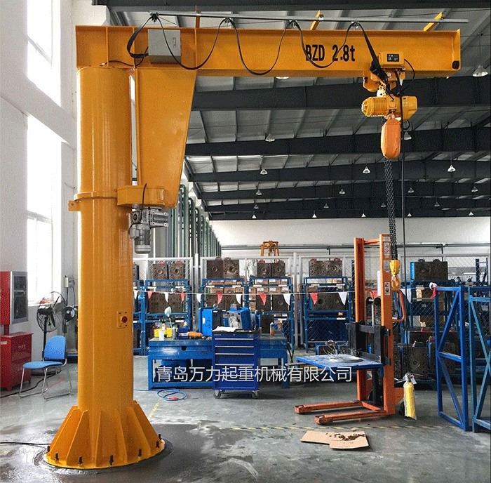 要設(shè)計方案的專用型起重機械。具備構(gòu)造新奇、有效、簡易、實際操作方便使用、旋轉(zhuǎn)靈便、安全作業(yè)室內(nèi)空間大等優(yōu)勢,是環(huán)保節(jié)能高效率的原材料吊裝武器裝備??善毡檫\用于廠礦、生產(chǎn)車間的生產(chǎn)流水線、裝配流水線和數(shù)控車床的上下左右鋼件及庫房、港口等場所的吊物吊裝。本機由立桿、旋轉(zhuǎn)懸臂及環(huán)鏈電動葫蘆等構(gòu)成。立桿下方固定不動于混凝土基本上,懸臂旋轉(zhuǎn),可依據(jù)客戶要求開展旋轉(zhuǎn)。