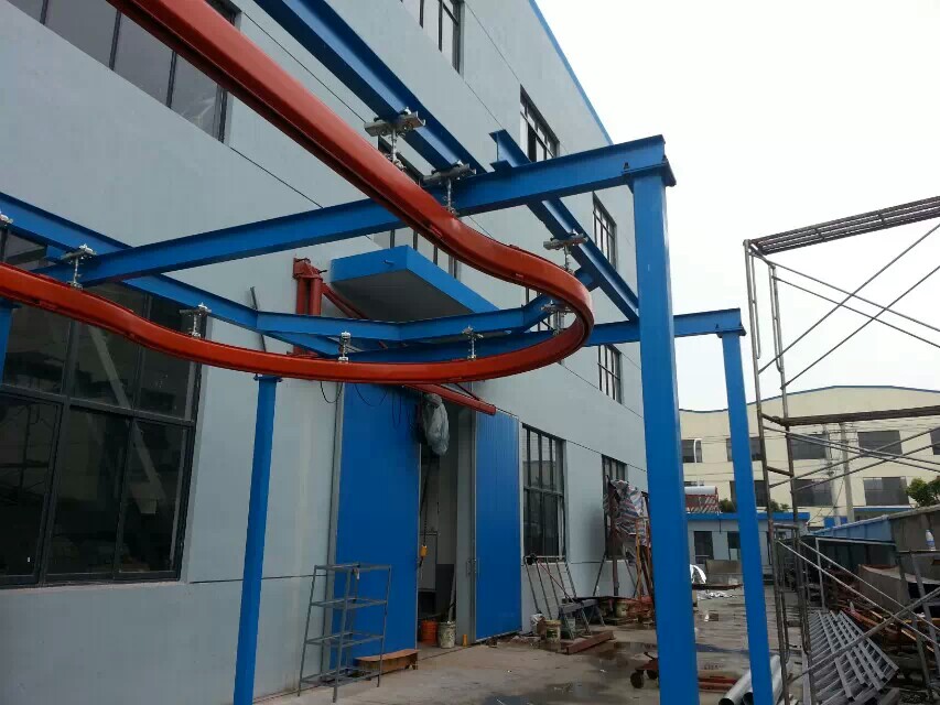 KBK軌道采用Ω形狀,2片焊接而成,常用的是KBKII型軌道,多根軌道可用高強(qiáng)度螺栓連接。彎軌的轉(zhuǎn)彎半徑1.5m,大彎可用直軌搭配。沒有更小半徑的,會(huì)對小車運(yùn)行有影響。也可在KBKII型軌道內(nèi)側(cè)安裝內(nèi)置滑觸線,用于葫蘆供電,稱為KBKII-R型。